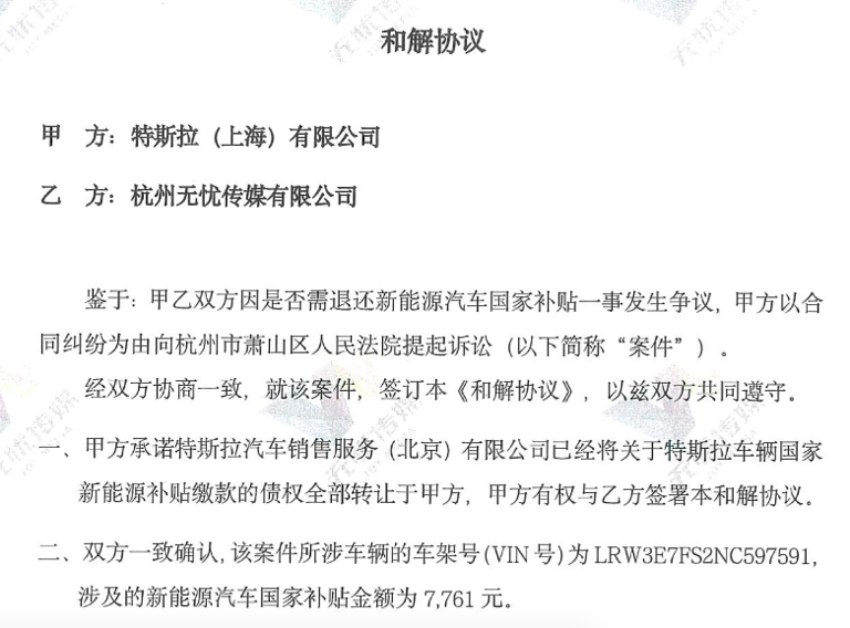 原标题:无忧传媒回复被特斯拉告状:与7761元购车补贴相关,两边已妥协