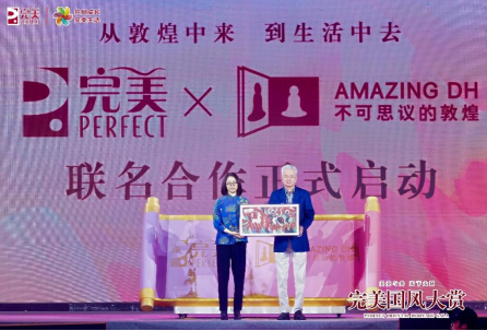 活动中,齐备公司精采官宣与“不成念念议的敦煌”IP联名互助。齐备公司董事长古润金与敦煌画院北京分院院长宋琳将象征敦煌颜色的五色沙注入容器,共同完成联名脱手,寓意“科技与文化的交融共生”。当年两边将推出台历、丝巾、礼品袋等联名文创产物,让千年敦煌艺术走进东谈主们的柴米油盐,成为不错在平素触摸、感知的生存好意思学。